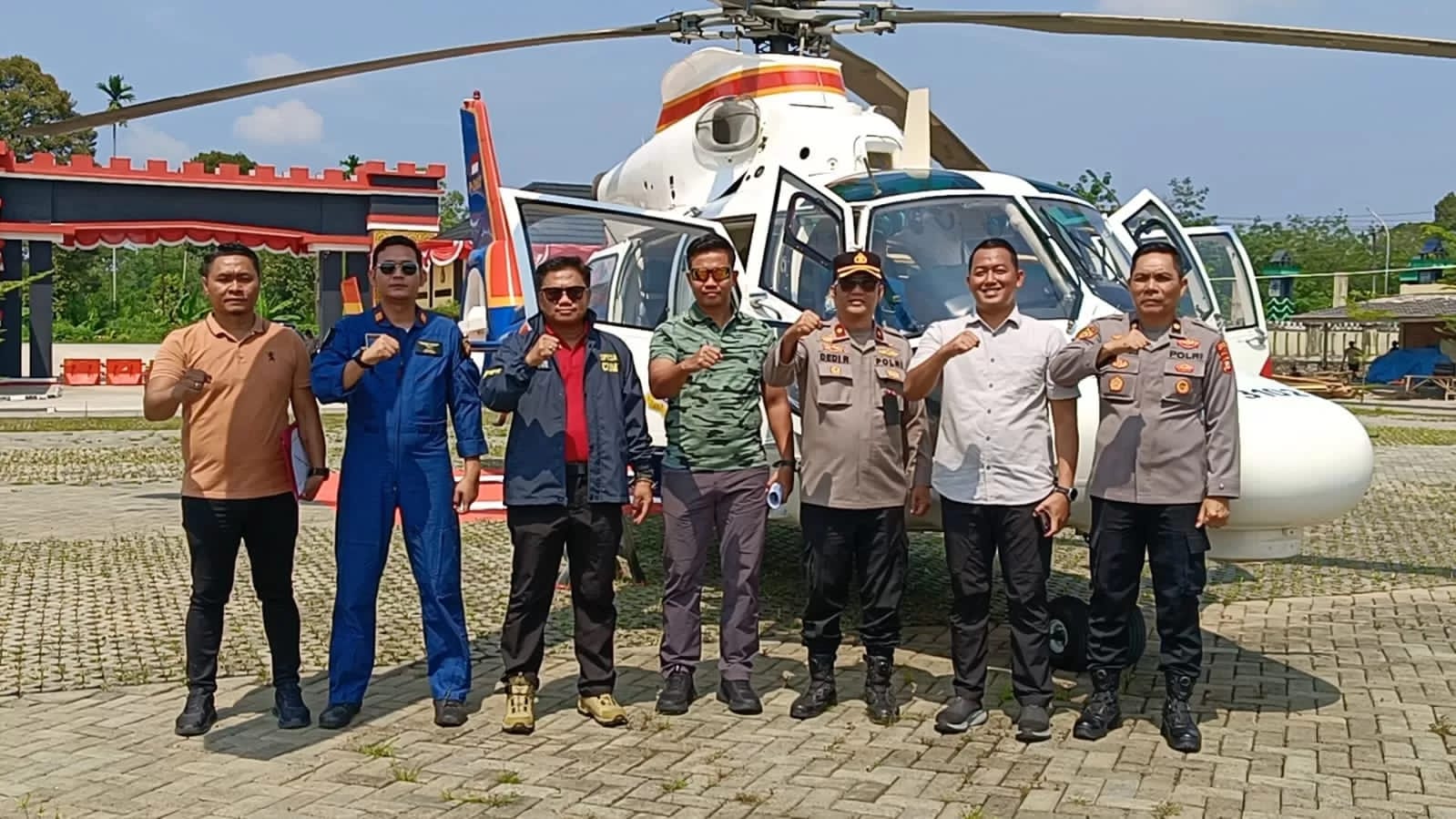 Tim bergrak dari halaman Polres Muratara melakukan pemantauan lewat udara menggunakan helikopter, Kamis (28/08/ 2025).